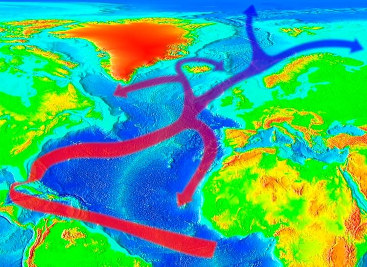 La Corriente del Golfo actúa como una cinta transportadora gigante de agua caliente que libera energía térmica en la atmósfera, ayudando a mantener un clima templado en Europa. Sin embargo, el calentamiento global está debilitando esta corriente, y los científicos temen que podría colapsar si las temperaturas globales continúan aumentando. Jack Wharton, investigador principal del estudio, indicó que una Corriente del Golfo más débil podría reducir las temperaturas en Europa hasta en 15 °C.