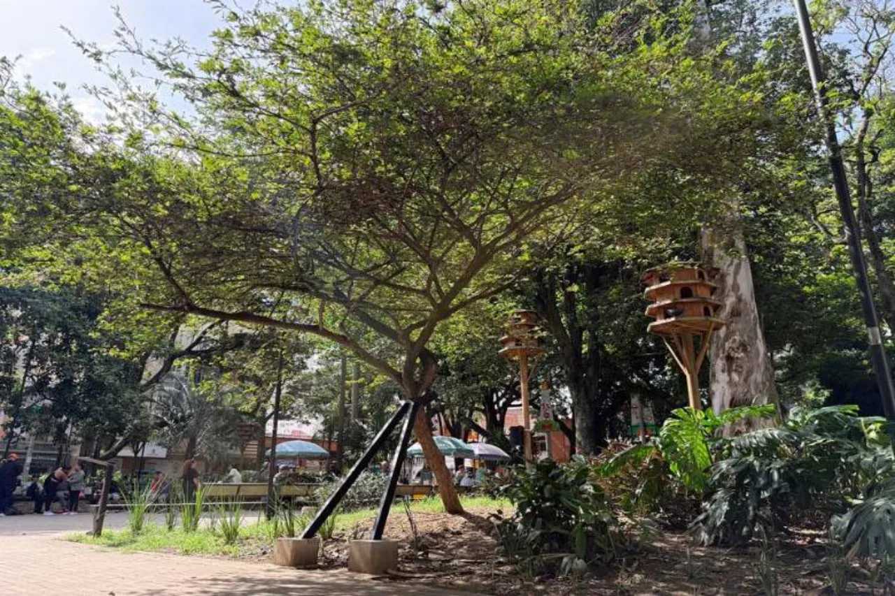 El increíble árbol carbonero del parque de Bolívar en Medellín otorga soportes metálicos para retrasar su colapso. Conoce por qué esta especie única está en riesgo y los refuerzo para preservar su historia.