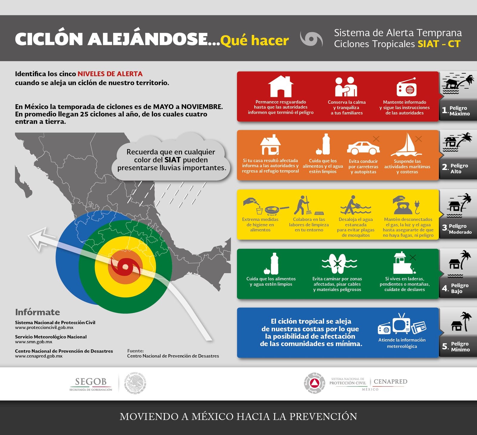 Es importante conocer la clasificación de los niveles de alerta por fenómenos, representada por colores: