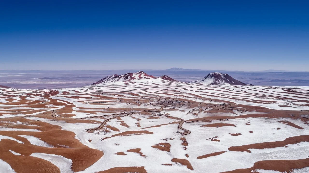 El pasado jueves, el desierto de Atacama, considerado el más árido del planeta, amaneció cubierto de nieve, un suceso que no ocurría desde hace más de una década, según comunicó el Observatorio ALMA en sus redes, ya que este suceso afectó sus instalaciones, que se encuentran al norte de Chile.